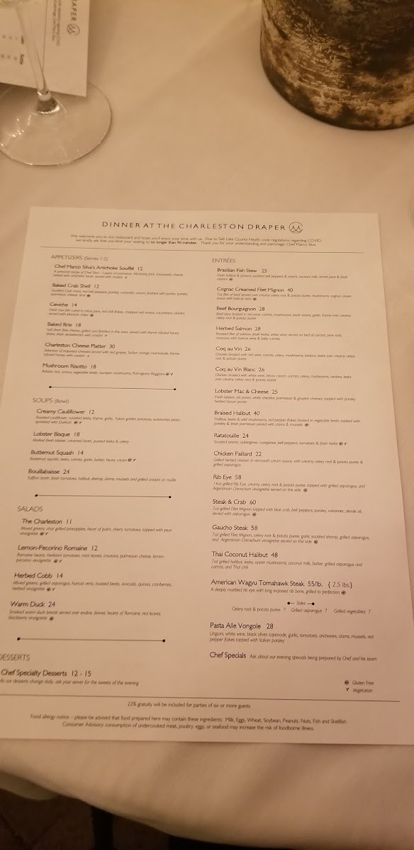 Welcome to The Charleston Draper, an exquisite culinary gem nestled in Draper, Utah. This charming restaurant invites you to experience a menu that celebrates both flavor and presentation, creating unforgettable dining moments. Start your journey with the Soup Du Jour, paired with freshly baked panini bread, setting the stage for a delightful meal at just $3.00.